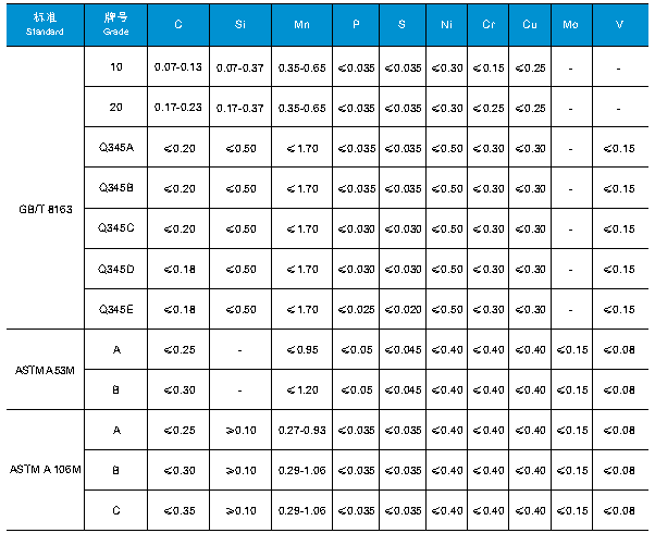 chemical analysis of A53&A106 pipes ASTM A53&ASTM A106 流体管化学成分